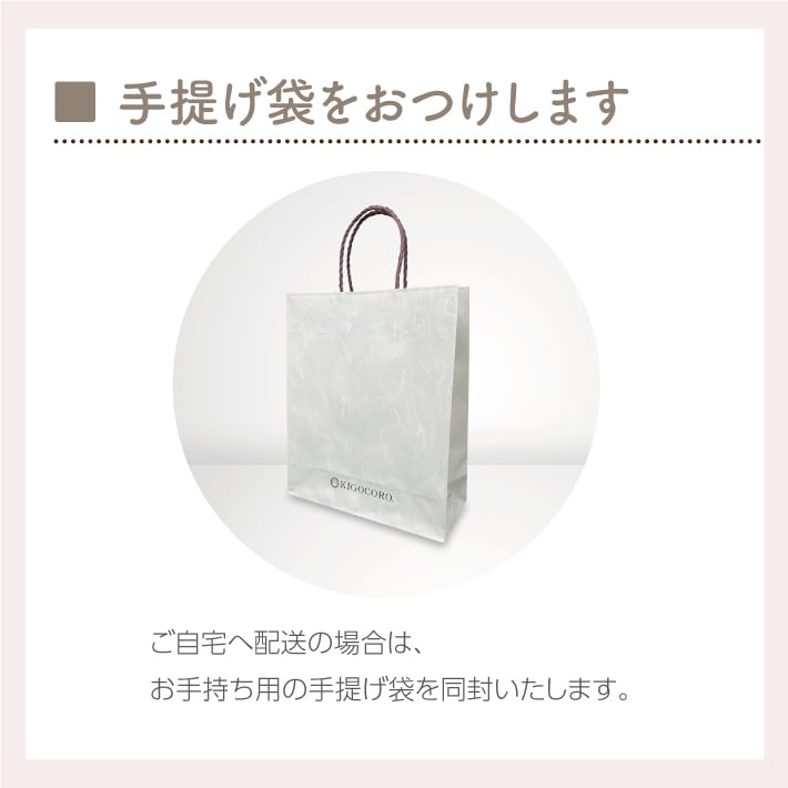 ※ご自宅に配送の場合は、お手持ち用の手提げ袋を同梱いたします。