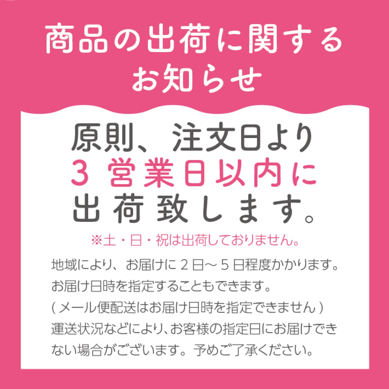 ・地域により、お届けまで3〜5日かかります。